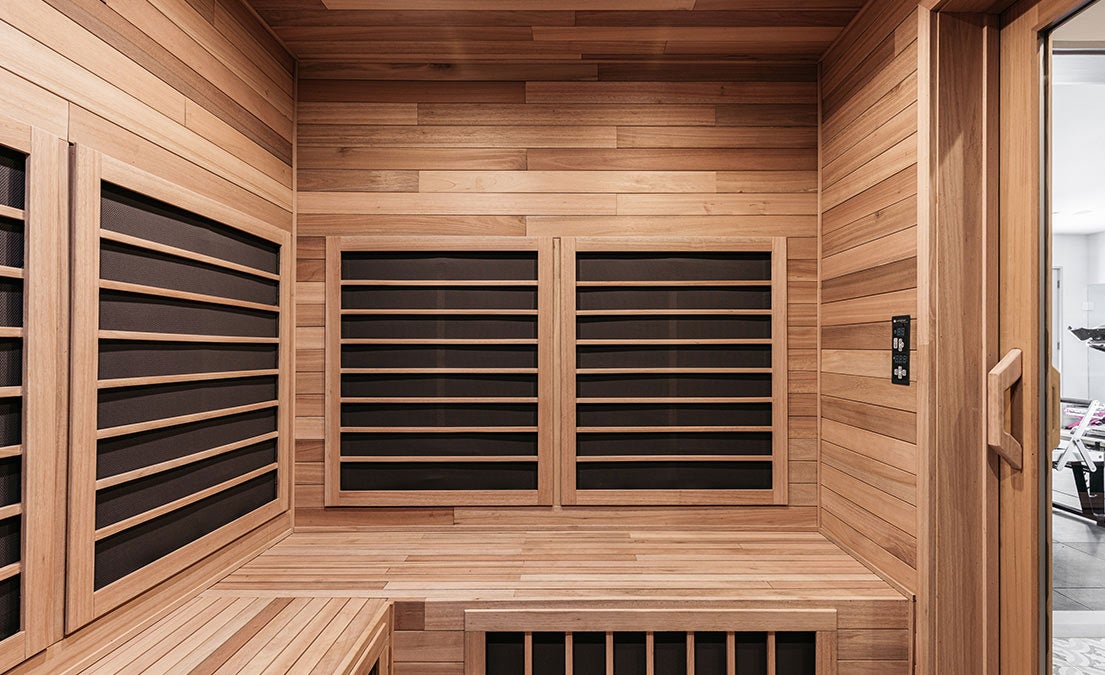 A retired professional baseball player requested his builder work with Sunlighten to design a custom infrared sauna for his home gym. The space integrates a changing room outside the sauna doors and wrap-around benches. He and his family enjoy stepping into their beautiful sauna for post-workout recovery.